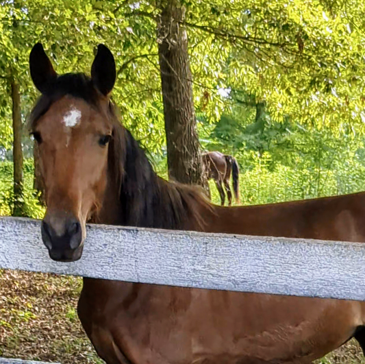 She loads, is SUPER easy to catch bc she comes to you and follows you around, stands on cross ties, has long thick mane and tail, vacuums (can blow air to clean her off) whole body and face, stands relaxed for flags being whipped all around her, stands for tarps being flung around her, crosses tarps, crossed bridge, picks up all feet nicely and is good for farrier trims, parks out and gives kisses and puts ears forward for feed, parks on command, is used to 4-wheeler in field, halters nicely, does pretty well with fly spray, is submissive by nature and SUPER easy to work with! She has a short back, long sloping shoulder, small head, straight legs, and sloping croup. She has nice overstride. She is ready for you to take and start her under saddle.