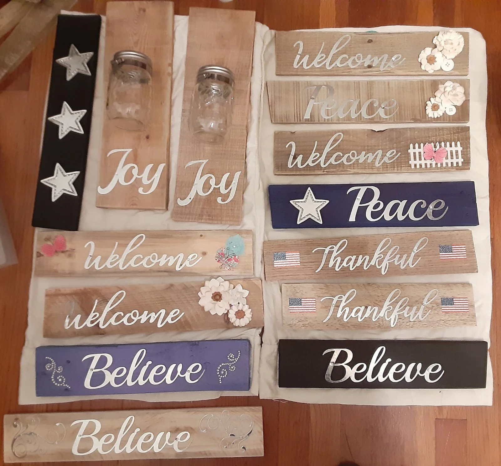 We believe everything deserves a second chance, so we repurpose reclaimed wood to make rustic home and yard décor. These pictures are just a sampling of what we have made and can be purchased/ordered. If there is something you don’t see here, that you may want made, please contact us to see if we can accommodate. Our décor is reasonably priced, much lower than most store prices. Contact for more information and prices on individual items. We do some local craft shows, but also can ship, meet to sell, or do pick up sales. We also always do the Bedford Santa Claws Holiday Bazaar Craft Show (see their Facebook page) in November. Prices for items in these pictures range from $5-$25, with some of the larger items being $35.